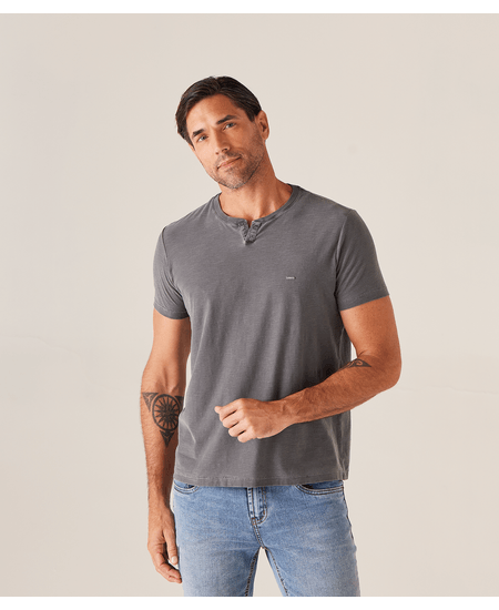 Camiseta Makenji Basica Manga Curta Decote Careca Masculina Cinza Gelo